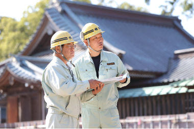 工事現場で現場監督をしています。施工、工程、品質管理をして施主であるお客様に満足のいく建物を完成させます。工事期間が1年以上の長期間に渡る工期のものもある為完成した時の達成感は特別な感動があります。